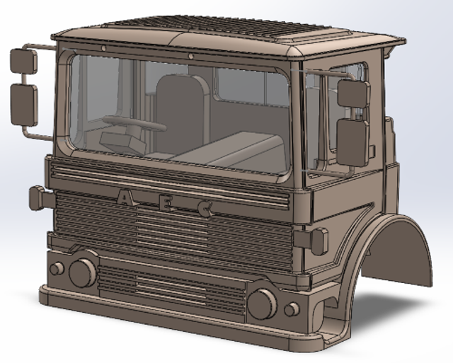 The kit comprises cab body, cab interior (not including steering wheel), rear view mirrors, indicators and windscreen wipers.