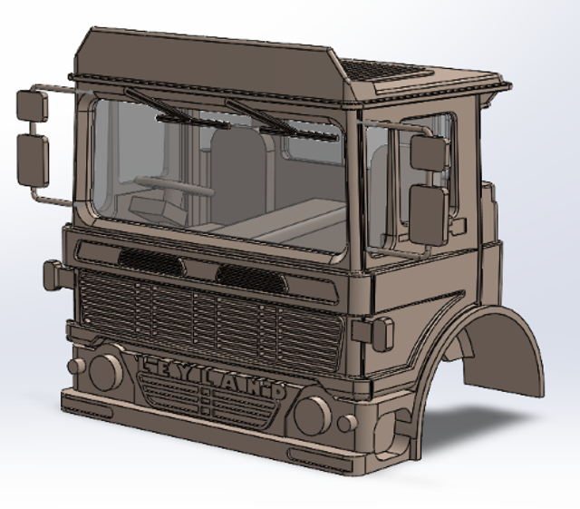 The kit comprises cab body, cab interior (not including steering wheel), rear view mirrors and windscreen wipers.